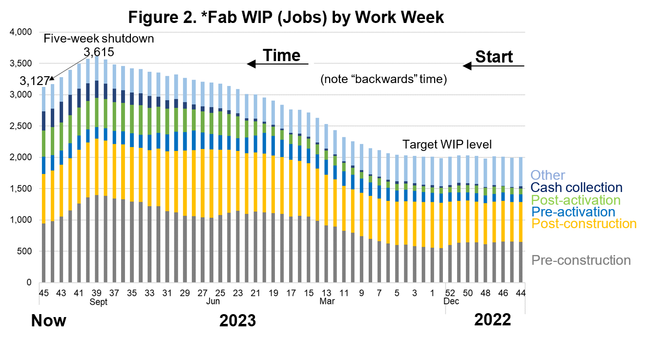 These actions have already resulted in a significant reduction of our fab inventory as shown. However, there are still many aged projects in our fab, which will flush out over the next two quarters, during which we will return to our faster historical cycle times.
