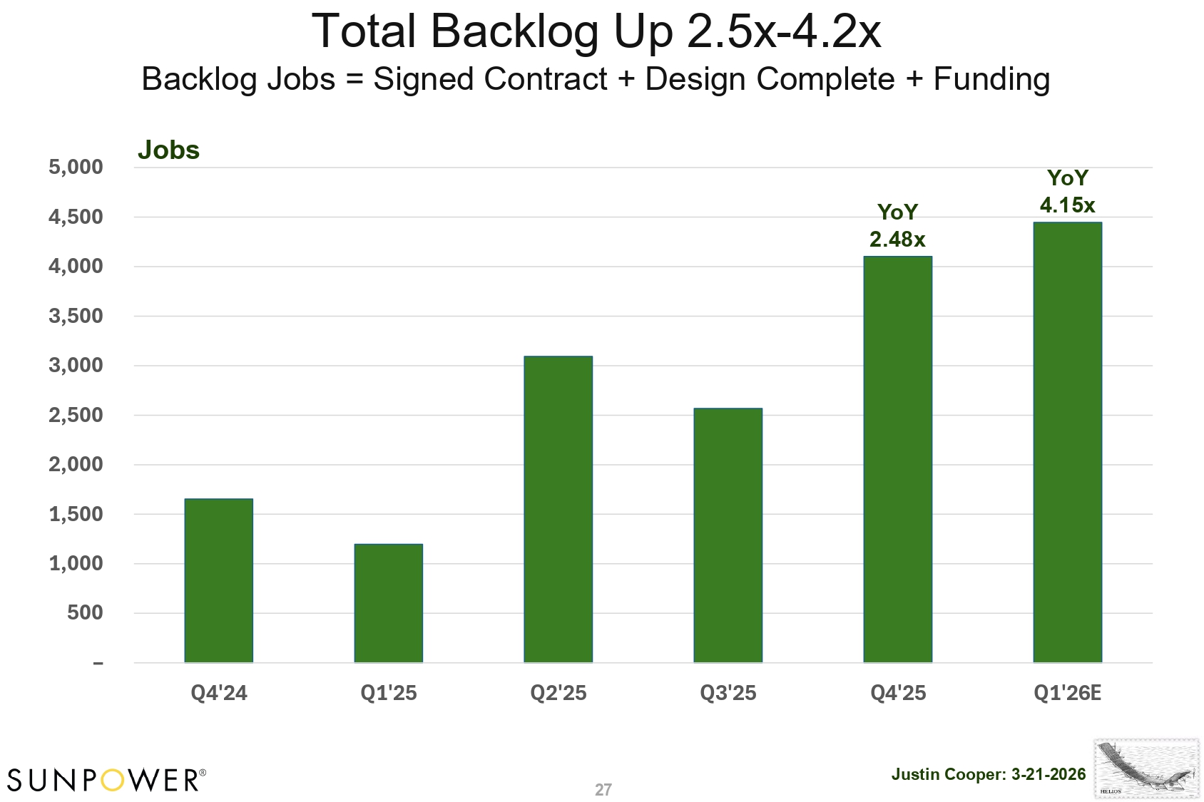 Spec Template 12645 / A 44 50 - 100 150 200 250 300 Q3 Q4 Q1 Q2 Q3 26 Q4 Q1 Q2 Q3 Q4 27 28 Q4 Q1 Q2 Q3 Q4 Q1 Q2 24 25 SunPower Direct Sales & EPC 1. SPWR - Direct Sunder 2. Sales New Homes 3. NH (Sales & EPC) 4. Battery - Upgrades 5. extEPC 6. Cobalt Owner: KXN 02/23/26 Revenue Plan G2v13S2 $M $441M +46.5% $663M $954M March 8, 2026 Actuals/Guidance Model (Not Guidance) $1B Revenue Sunder Batteries Cobalt EPC $7.3M $3.8M $3.0M New Homes $309M $3.0M Planned Revenue Growth Ambia $22.9M
