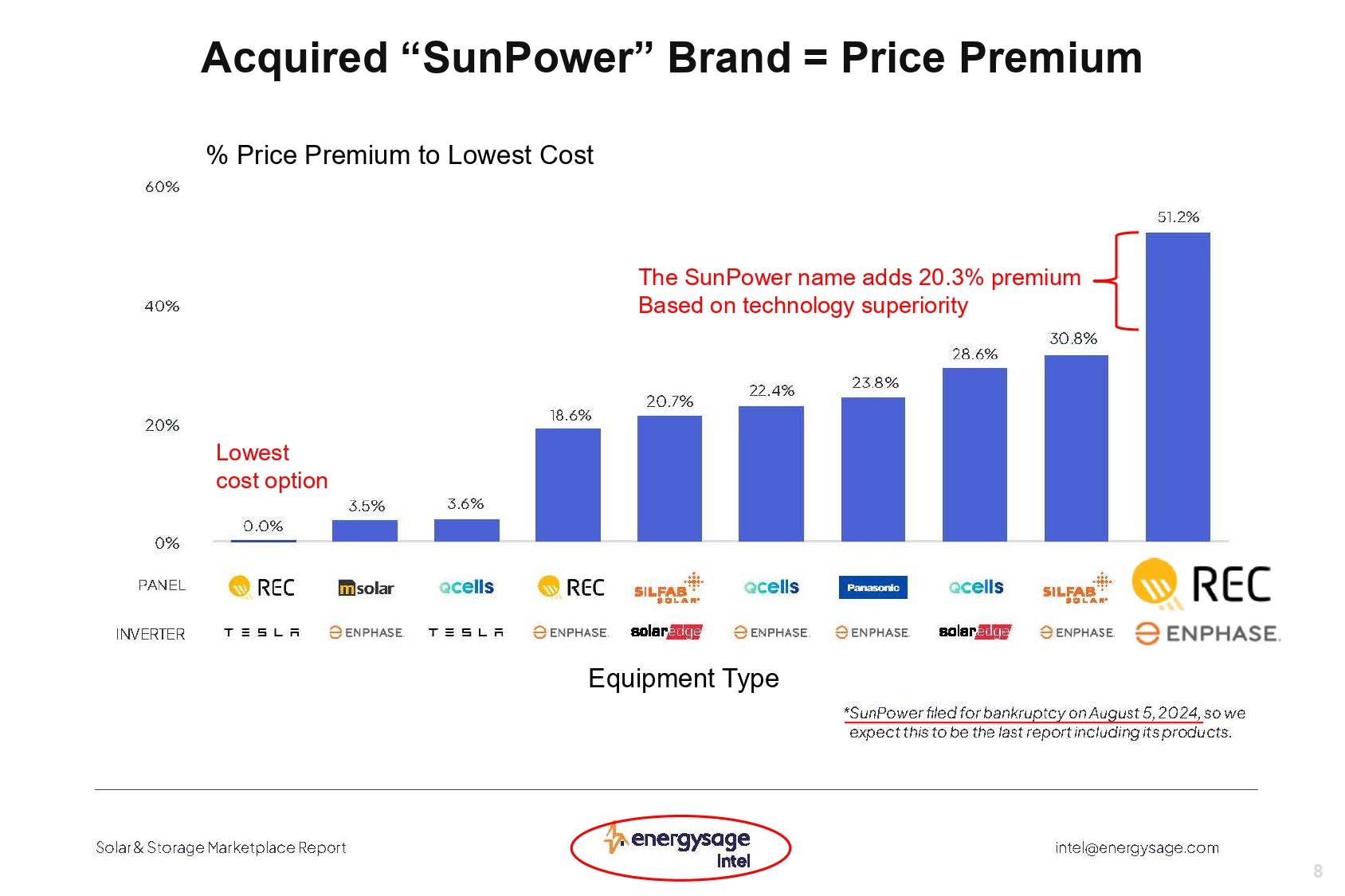 The SunPower name adds 20.3% premium Based on technology superiority Acquired “SunPower” Brand = Price Premium 8 Lowest cost option % Price Premium to Lowest Cost Equipment Type